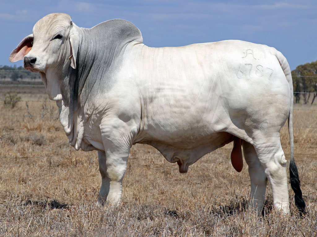 These big volume, white grey sires continue with Hamilton. Have a look at his valuable natural muscle expression, great spring of rib and huge, big square, deep hindquarter. Soft and smooth in his cover, just the way you want them. Out of a Jaguar daughter. Dam 2 calves @ 527 dci; Granddam a donor 12 calves inc. 6 natural @ 368 dci.